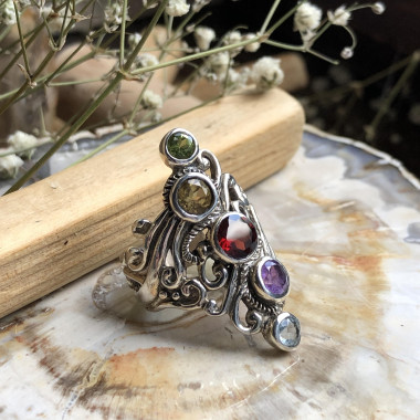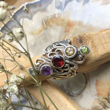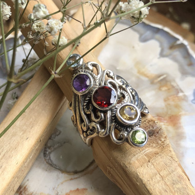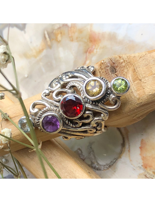 Jolie bague Taille 57 toute en finesse, les petits cabochons de pierre mesurent 9 et 5 mm. Le montage de la...