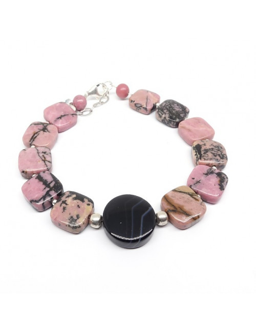 - Rhodonite de 10 x 10 mm et Onyx de 15 mm