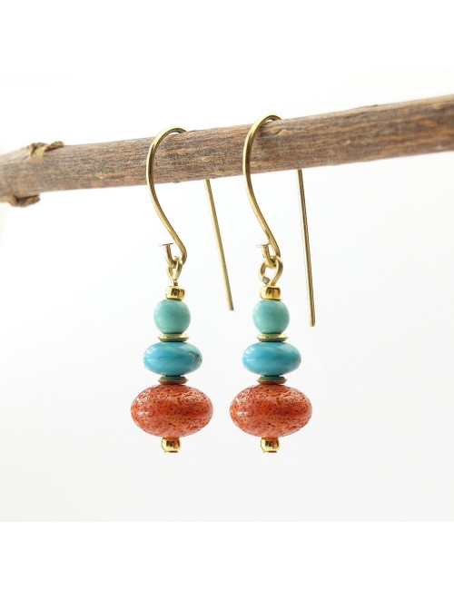 Turquoise et corail, Boucles d'oreilles