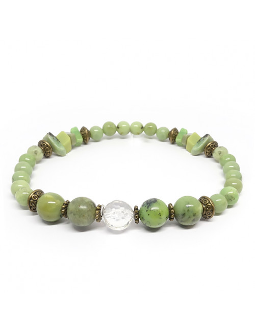 Pierres semi-precieuses de 6 et 8 mm montées sur une élastique spécial bijou. Les apprêts sont en métal bronze.