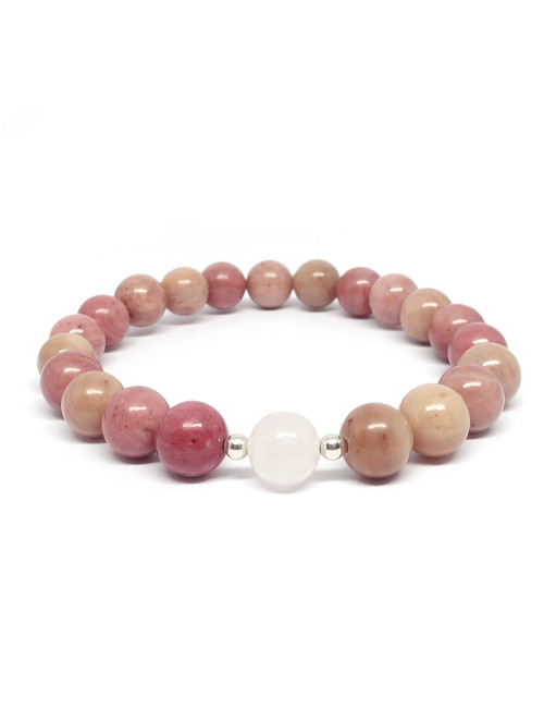 Rhodonite et quartz rose 8 mm, Bracelet extensible