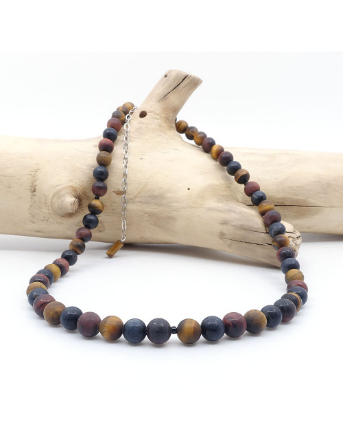Pierres les 3 oeils pierres mates ( oeil de tigre, oeil de faucon et oeil de taureau ), Collier Homme